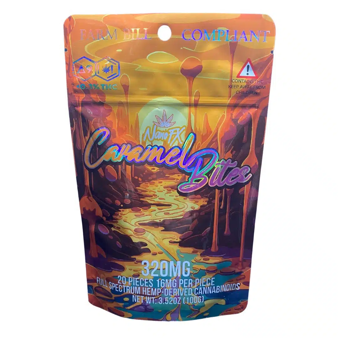 Caramel Bites are a gourmet journey, each piece a decadent blend of infused caramel and premium chocolate with a hint of sea salt, providing a perfect balance of 8 mg THC and 2 mg CBD.