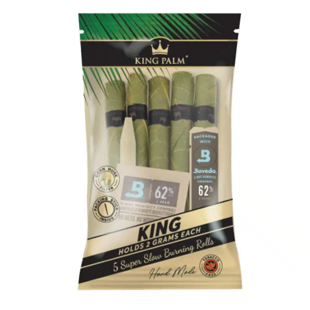 King Palm separates themselves from many wraps and rolling paper companies that use glue, tobacco additives, or nicotine. Instead, they offer a leaf grown in chemical-free soil and combine this with a natural corn husk filter tip.